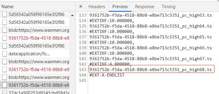 Preview,查看内容,有多少个.ts文件,当前是[0~68]共69个.ts文件。